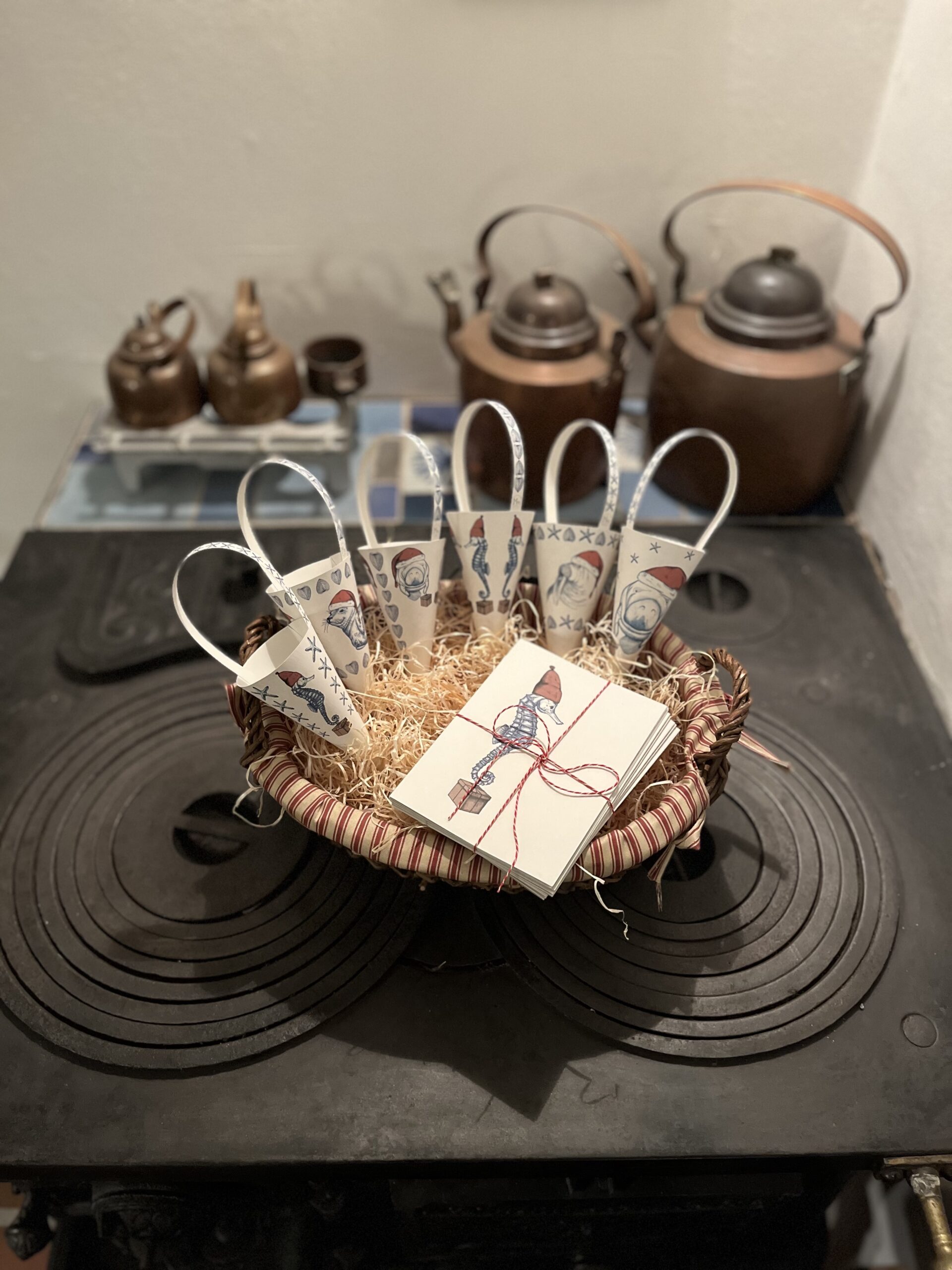 Sidste år havde Thilde stor succes med at give vores dyr nissehuer på og klippe dem ud til fin julepynt. I år har hun tryllet juledyrene om til kræmmerhuse og julekort.