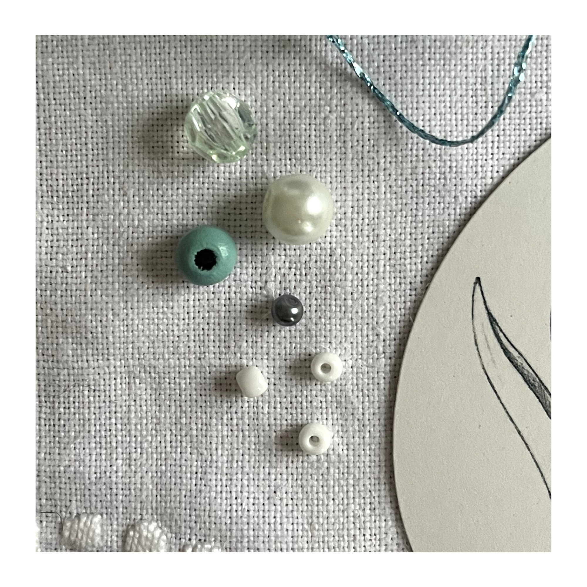- Bind en af de små perler godt fast for enden af snoren. Skjul eventuelt knuden inde i perlen.