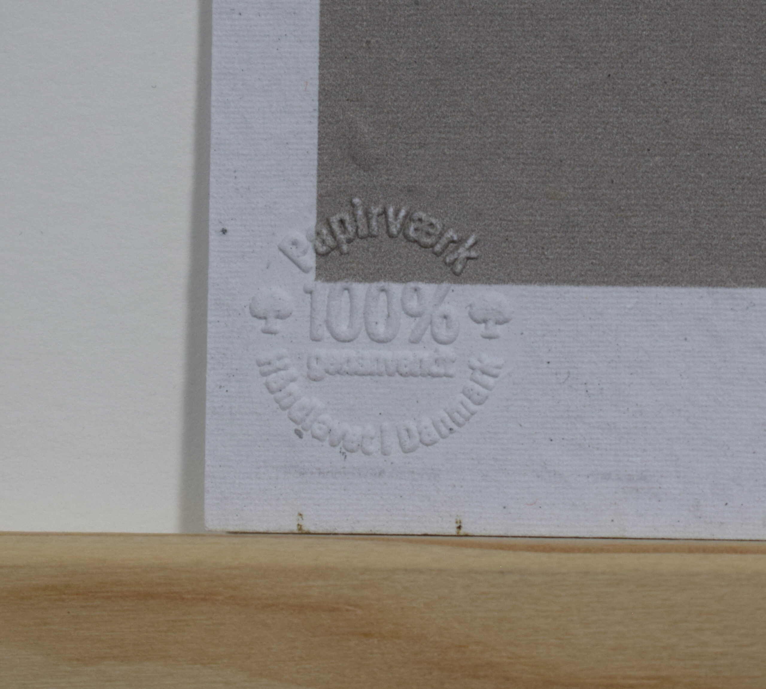 Da papiret er lavet i hånden, gør vi opmærksom på, at det kan variere i tykkelsen, og at der kan forekomme rester efter tal, bogstaver, farve, m.m., som vidner om papirets tidligere liv.