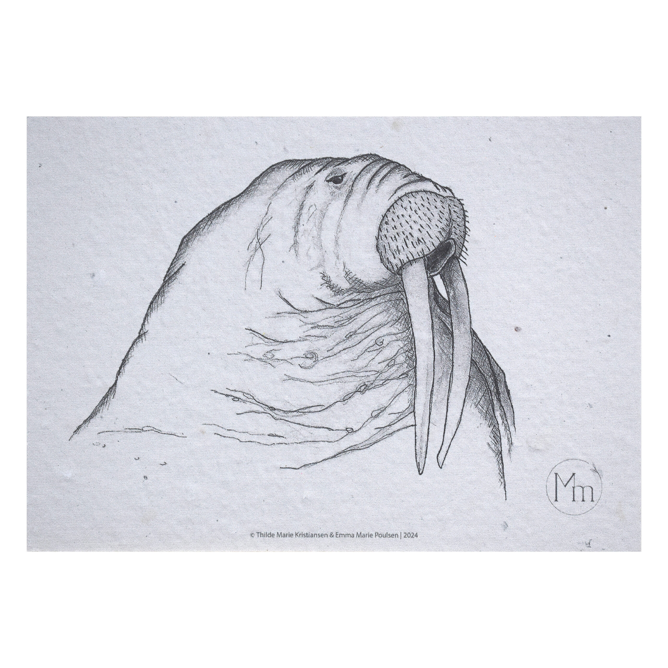 Limited edition kunsttryk af håndtegnet motiv: “Hvalros”. Str. ca. A5 (ca. 14,8 x 21 cm).*