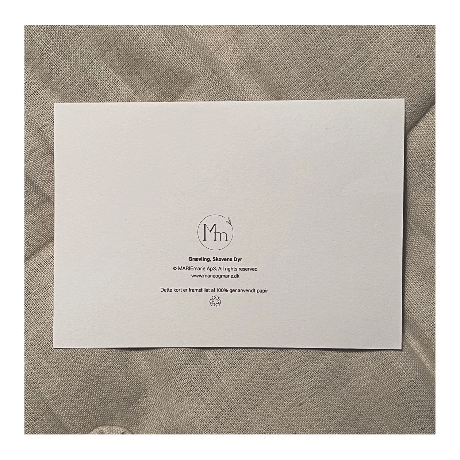 Kortet er fremstillet af 100% genanvendt papir (RecyStar® Nature) i offset, naturhvidt papir med små nister, som vidner om papirets tidligere liv. Det er i en kraftig papirkvalitet og leveres inkl. brun kuvert i genanvendt papir.