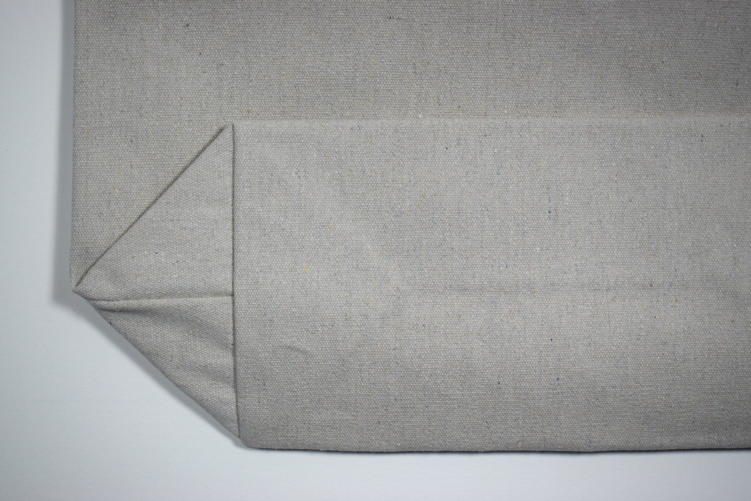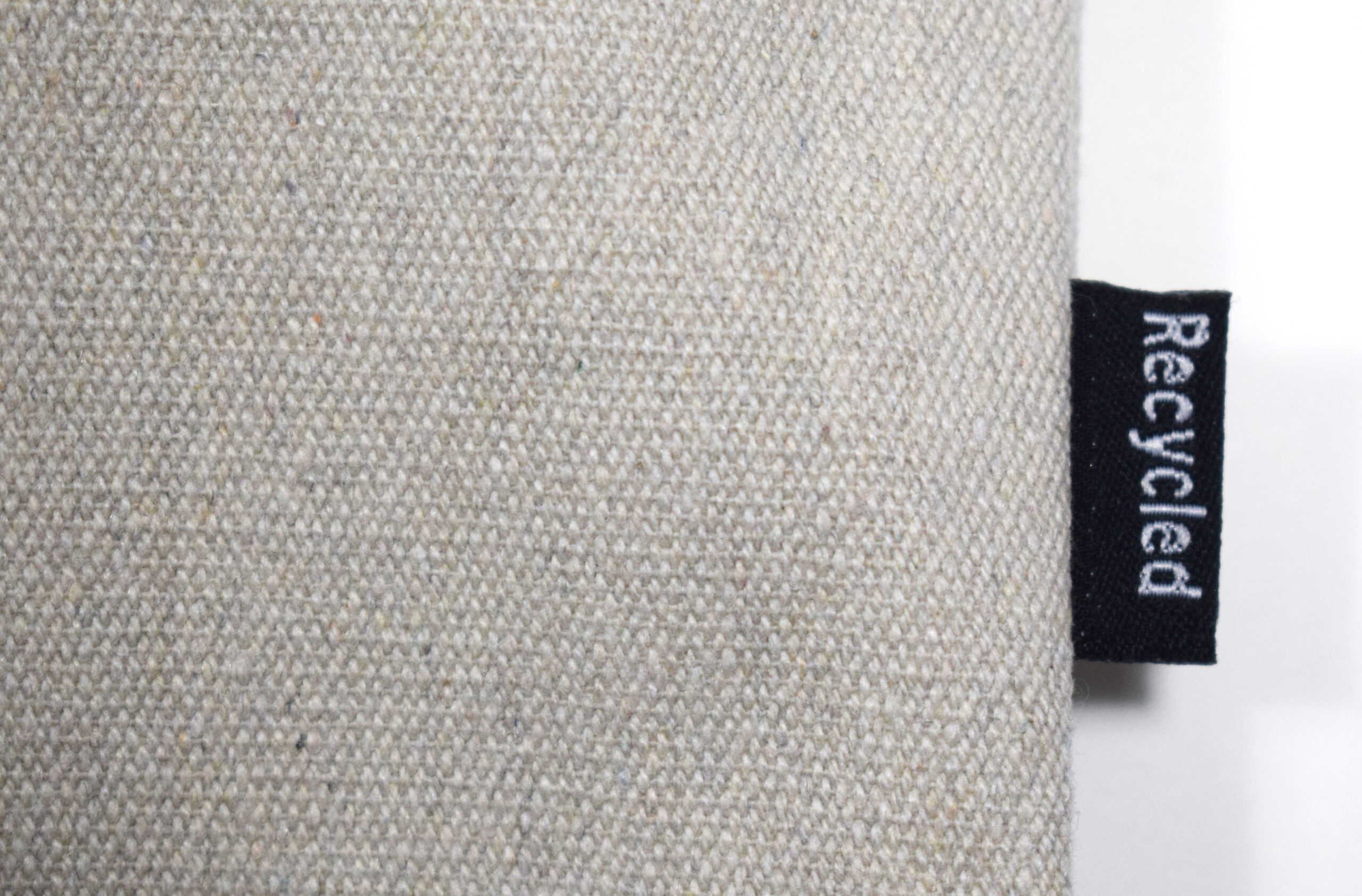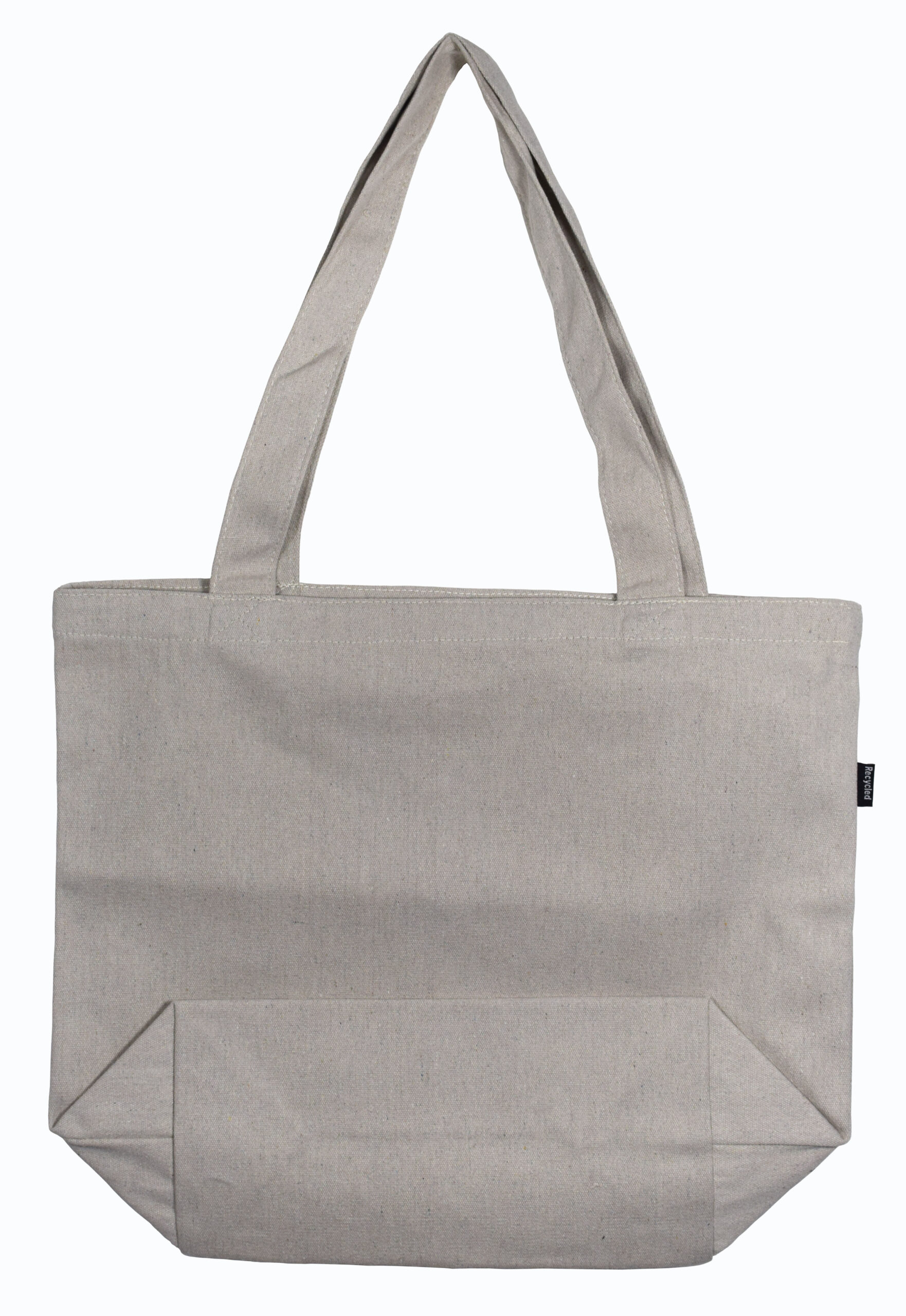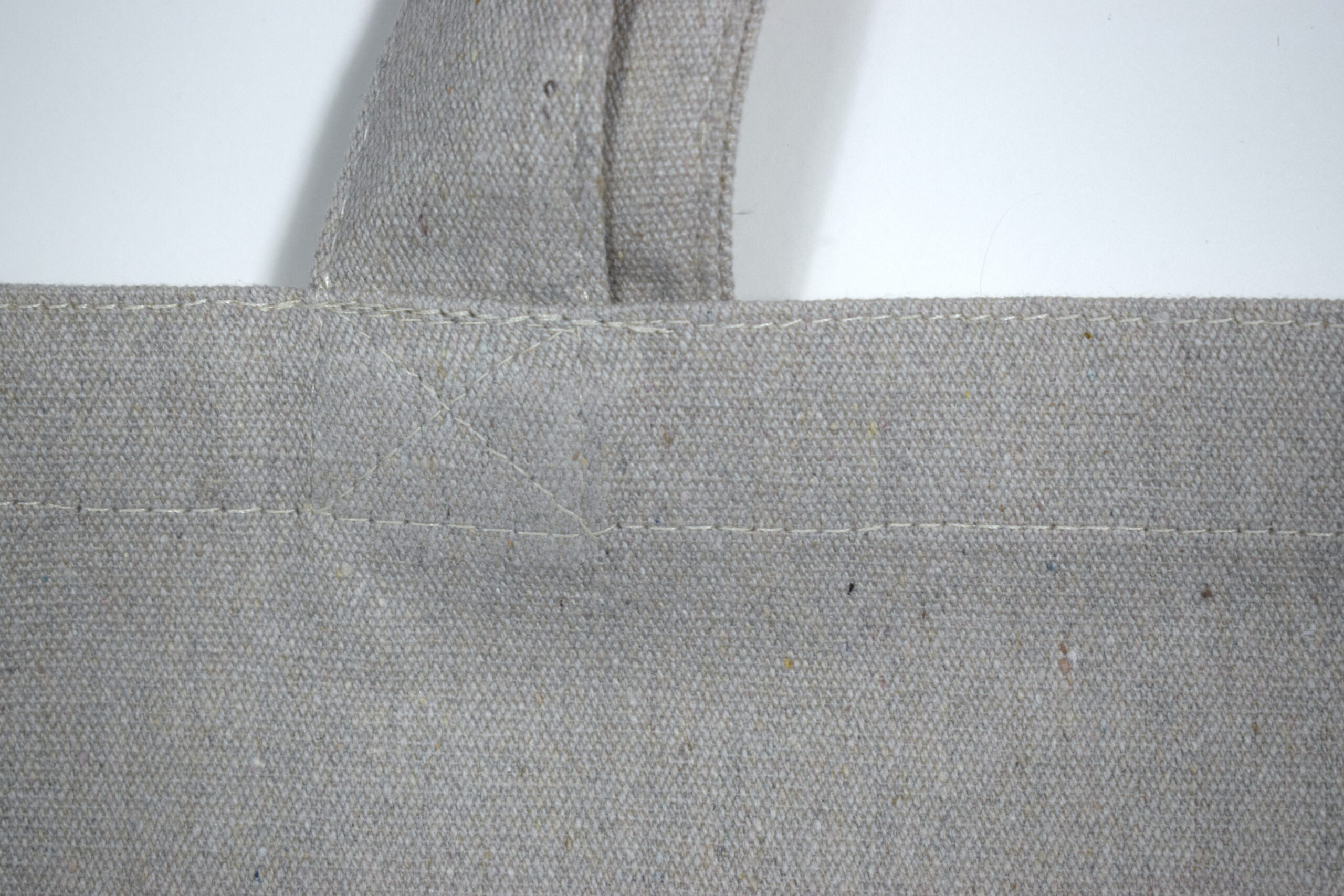 Stor mulepose af 100% genanvendt, naturfarvet tekstil (bomuld/polyester). I tekstilet kan forekomme små farvede nister, som vidner om tekstilets tidligere liv.